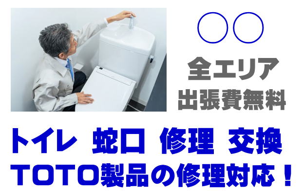 ○○でTOTO製品の修理業者をお探しなら当社までお気軽にお問い合わせください。トイレ便器タンクの故障、便座の修理、蛇口やシャワーの水漏れなどTOTO製品に関するトラブルなら何でもご相談ください。